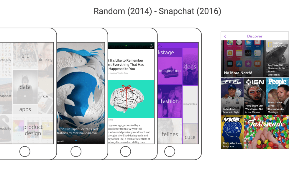 By combining relevance and serendipity, rich media content, a deep machine learning system and adaptive user experience, Random turned into a product that could truly help people discover new things they didn’t even know existed.